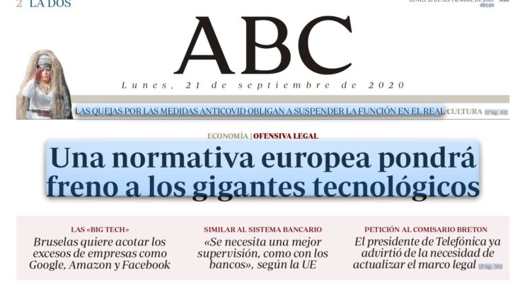 El colmo es el ABC, o más bien la prensa en general. Que quieren acabar con las empresas tecnológicas porque son mucho más eficientes que ellos dando noticias, para que ellos puedan seguir publicando estupideces e indoctrinamientos en papel. Quieren acabar con Twitter, con Google, con Facebook, y con todo lo que no sea un monopolio de la opinión. No de la información: de la opinión. Quieren seguir manipulando a la gente.