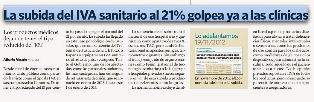 La subida del IVA sanitario puede producir un déficit de la Seguridad Social mucho más increíblemente grande que el actualmente existente sólo por un motivo tributario absurdo e irracional. Pero tiene la gran ventaja de que, por una vez, se controlarán los costes de la sanidad, porque tendrán que tributar. Lo único que me pregunto es si los inspectores financieros y tributarios tendrán valor para meterse dentro de la Seguridad Social y asignar costes racionales a los servicios irracionales que presta la Seguridad Social española.