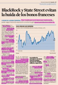 Lo que tenemos delante son fondos de inversión que han decidido deshacerse de sus riesgos en bonos franceses poco a poco y sin que se note, obteniendo en la desinversión el mejor precio posible. Deshacerse de la basura sin declararla basura. Esa es la idea. Ya pasó: recuerden que la crisis de 2007 sólo se manifestó en 2008 por lo mismo. Lean a Ferguson «Inside Job» o vean la película (https://youtu.be/T2IaJwkqgPk?si=wNdl4v92htabb1xw)