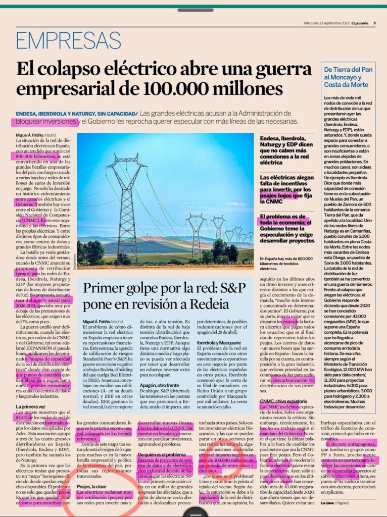 Esto es muy fácil. El problema es que no quieren pagar lo que las cosas cuestan. Si usted quiere TRANSPORTE URBANO gratis para sus ciudadanos, tiene que pagar al Consorcio de Transportes. Pero tiene que pagar lo suficiente para que a las empresas de transporte les compense llevar a la gente de un lado para otro. Si usted quiere tener una RED DE CARRETERAS que permitan buen transporte por camión, tiene que pagar la carretera y su Mantenimiento. Si usted quiere una RED DE ALTA VELOCIDAD FERROVIARIA, tiene que pagar la red y su mantenimiento, y si no te quedas como Óscar Puente: gestionando el caos. Si a usted le interesa tener una RED ELÉCTRICA que soporte inversiones multimillonaria, cuya productividad es más interesante que el coste, tiene que pagar los peajes. Mira que es fácil. Pues la CNMC no se entera, y el Gobierno no quiere enterarse. O ponen más dinero sobre la mesa, o las eléctricas españolas seguirán invirtiendo en los Estados Unidos.