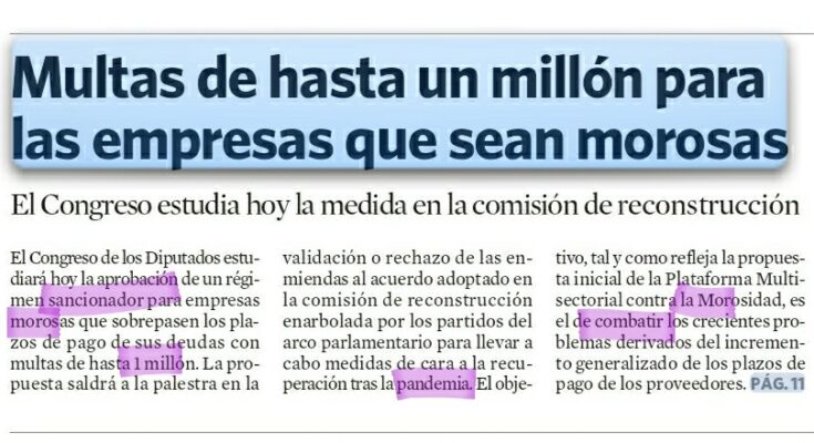 El Congreso de los Diputados estudia hoy una reforma legislativa con arreglo a la cual las empresas morosas tendrán que pagar una sanción de hasta un millón de euros por no pagar a tiempo.