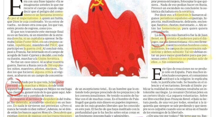Recomiendo la lectura de este artículo de Andrés Amorós en el ABC de hoy, en el que expone las barbaridades del Gulag y, lo que es peor, el cinismo colectivo de la prensa de izquierda sobre la religión comunista.